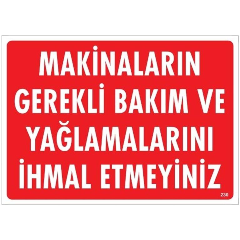 Makinaların Gerekli Bakım Ve Yağlamalarını İhmal Etmeyiniz Uyarı Levhası