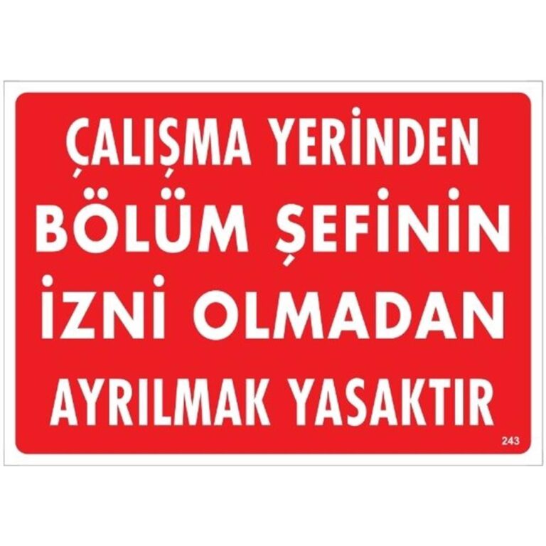 Çalışma Yerinden Bölüm Şefinin İzni Olmadan Ayrılmak Yasaktır Uyarı Levhası
