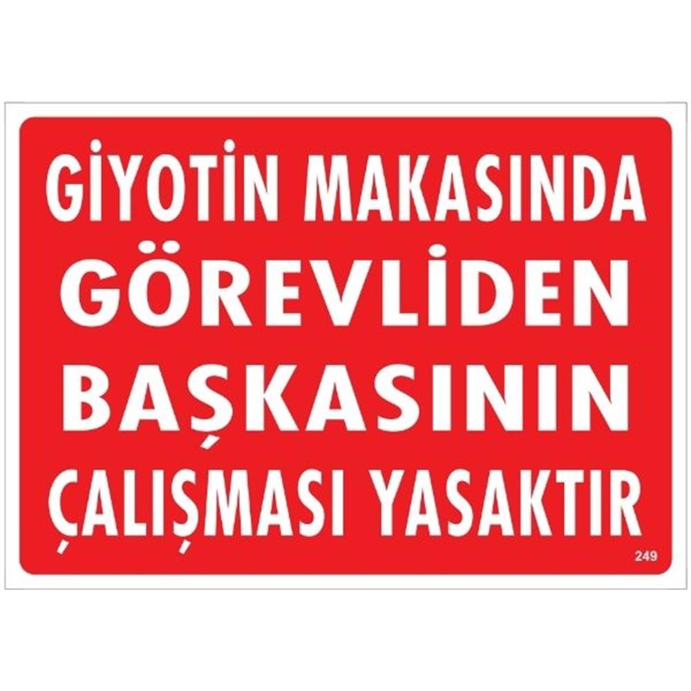 Giyotin Makasında Görevliden Başkasının Çalışması Yasaktır  Uyarı Levhası