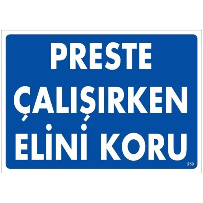Preste Açık Kalıpla Çalışırken Maşa Kullan Uyarı Levhası