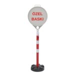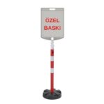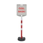 Hazır şablon uyarı levhalarımız ile oluşturulan setlerimizde uyarı dikmelerimizin üzerine montajlanabilmesi için 34×40 cm ve 30×30 cm ölçülerde, dikdörtgen, kare, yuvarlak ve üçgen levha çeşitlerimiz bulunmaktadır. Setlerimizin içerisinde uyarı dikmelerinin ağırlıklı tabanları da gönderilmektedir.